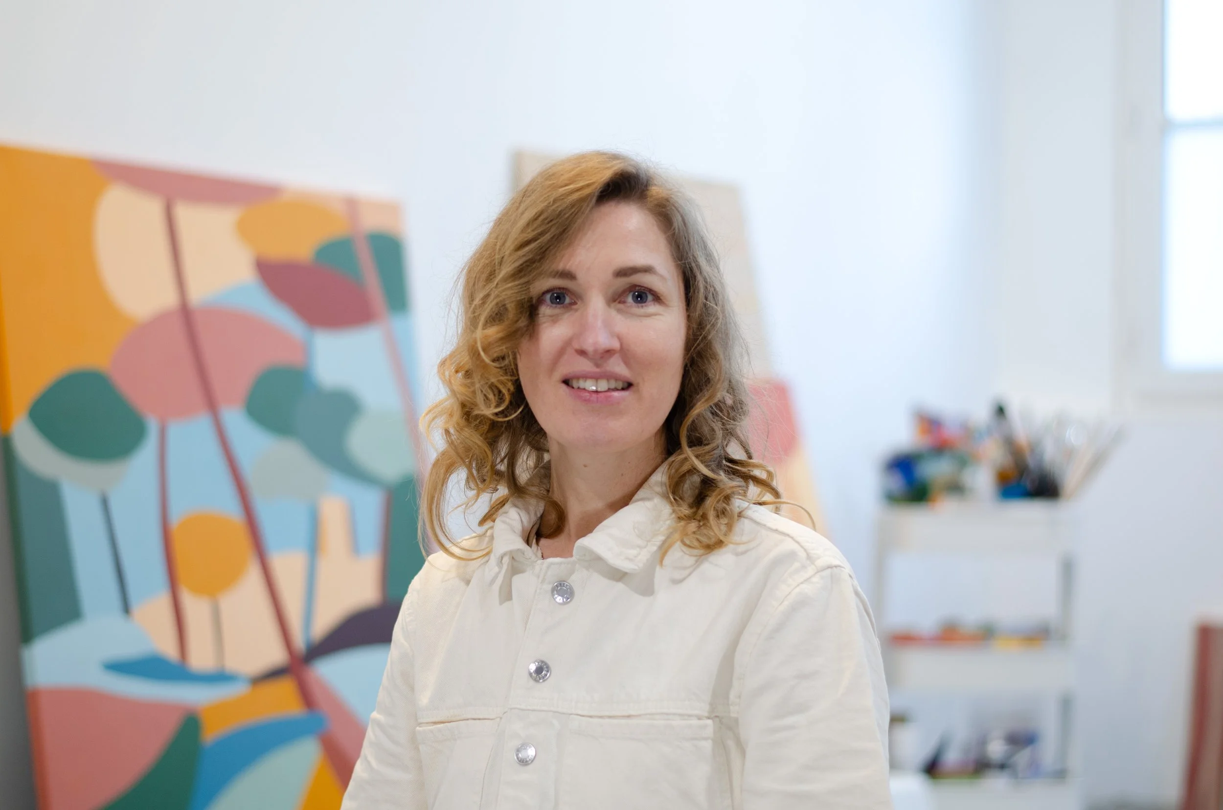 A travers la couleur et les grands formats, je créé des espaces où l’on peut ralentir, redonner du temps au regard et retrouver de l’attention. »